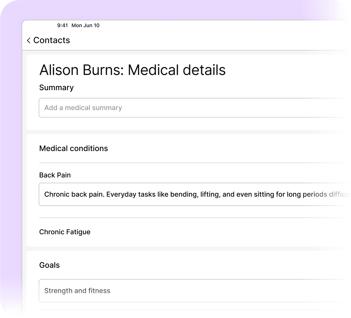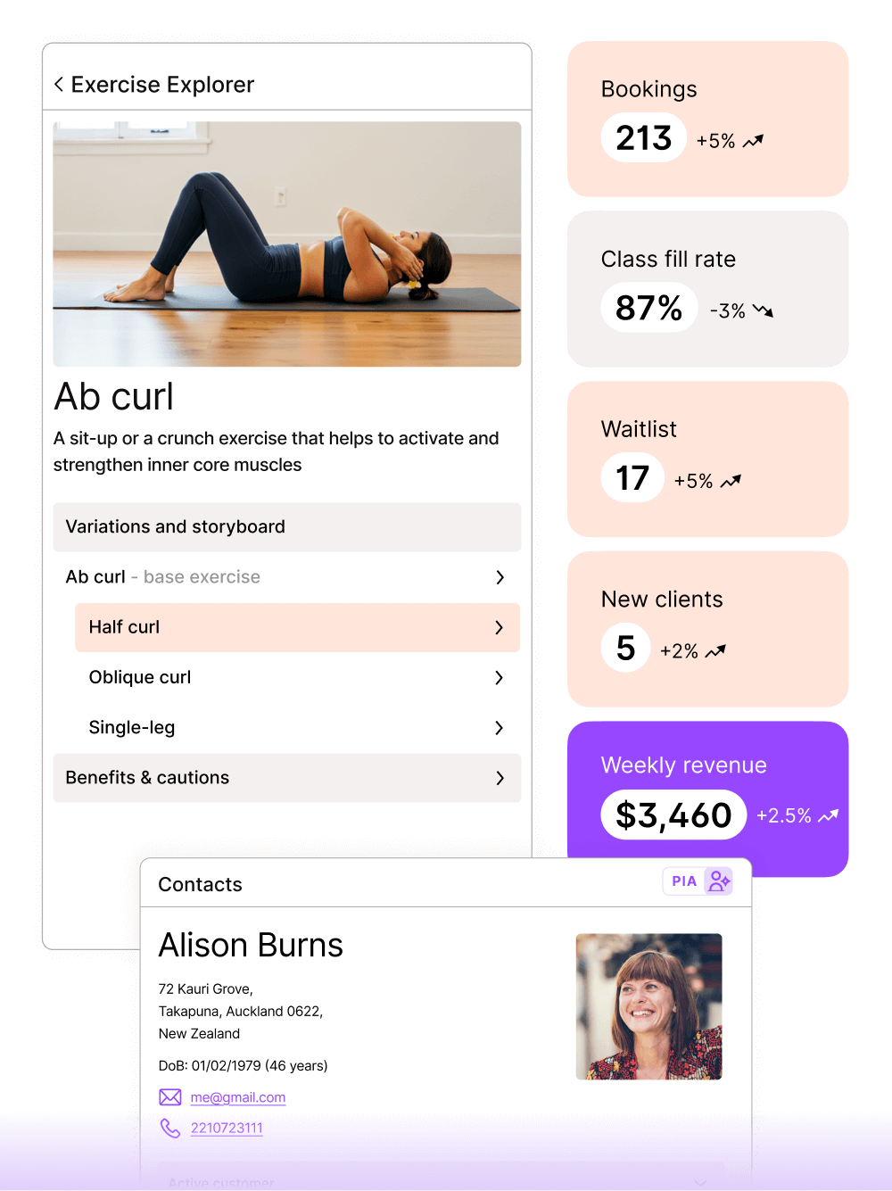 Tracks goals and progress to support personalised, client-centred Pilates.